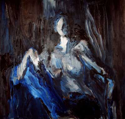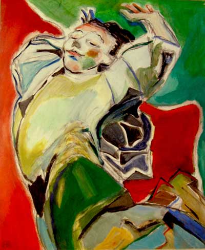 Schildert met verschillende materialen in wisselende technieken, experimenteert met collages en vlakdrukken, werkt figuratief en verhalend.